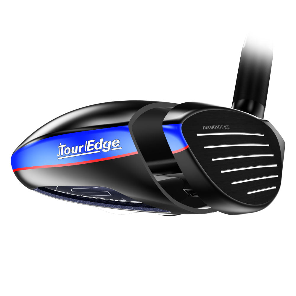 The larger clubhead of the EXS 220 hybrid is made to bring the power of a fairway metal to a hybrid design. This amped-up hybrid utilizes a lighter 450-Hyper-Steel/360-degree Cup Face design that features new Diamond Face technology that produces a hotter face with faster ball speeds and better performance on off-center hits, as well as reduced spin.