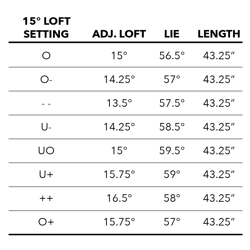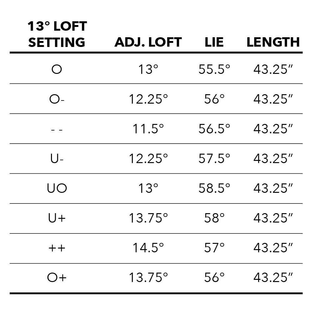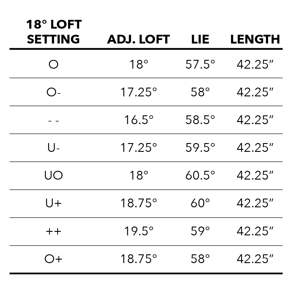The adjustable hosel allows the user to adjust the loft +/- 1.5 degrees up or down.