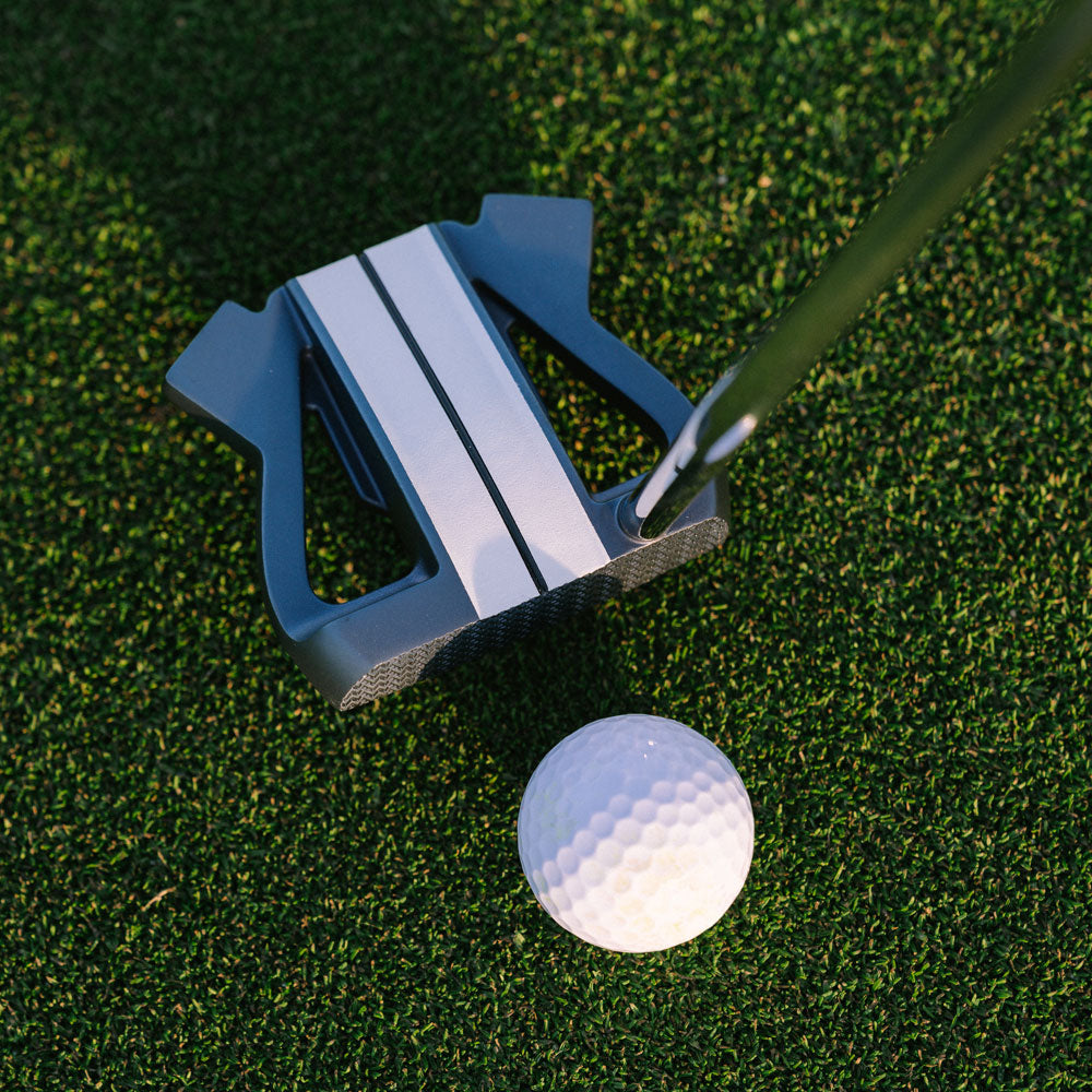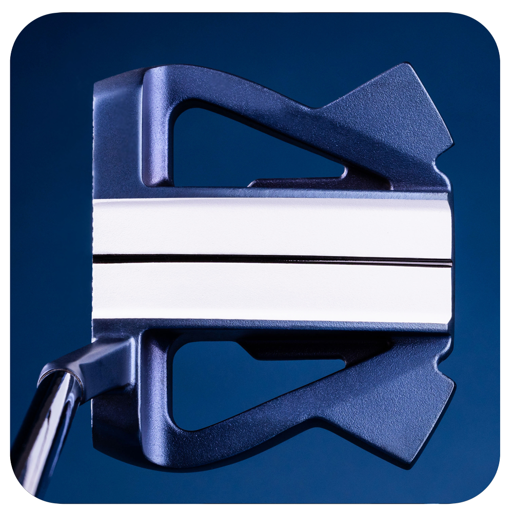 A contrasting white alignment stripe draws your eye to the center of the putter face and down your target line. Subtle visual cues such as the design angles and shaft bend offerings further enhance your alignment.