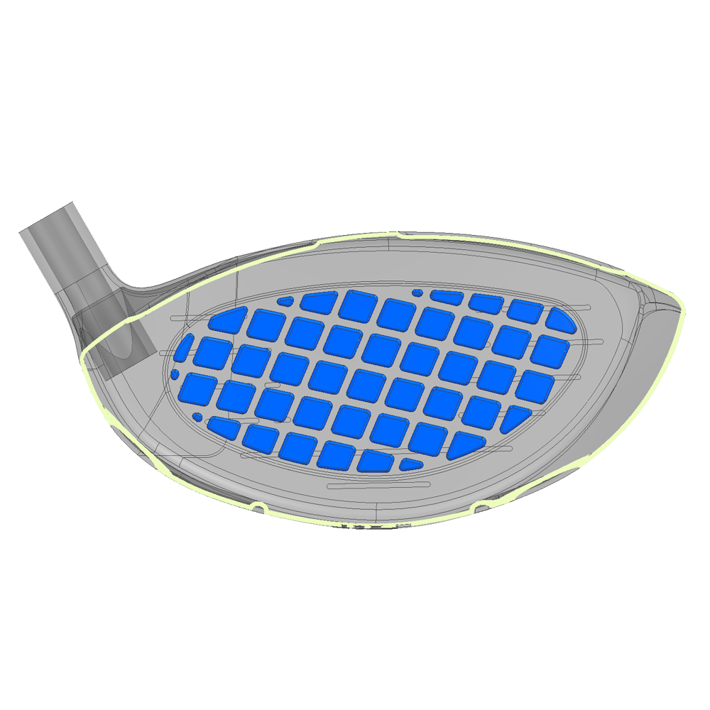 Breakthrough face technology that features 37 different thick and thin diamond shapes or “mini-trampolines” behind the face. Diamond Face VFT produces a hotter face with faster ball speeds and better performance on off-center hits, as well as reduced spin.