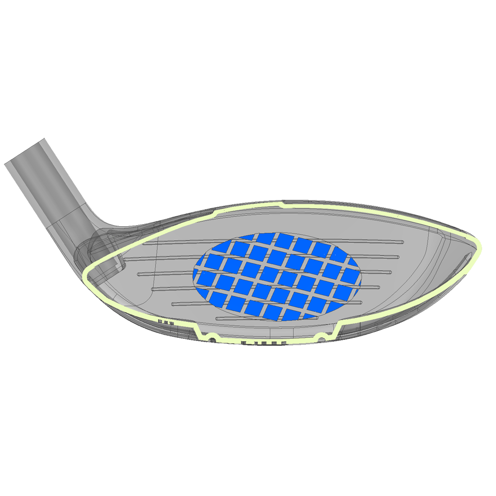Breakthrough face technology that features 35 different thick and thin diamond shapes or “mini-trampolines” behind the face. Diamond Face VFT produces a hotter face with faster ball speeds and better performance on off-center hits, as well as reduced spin.