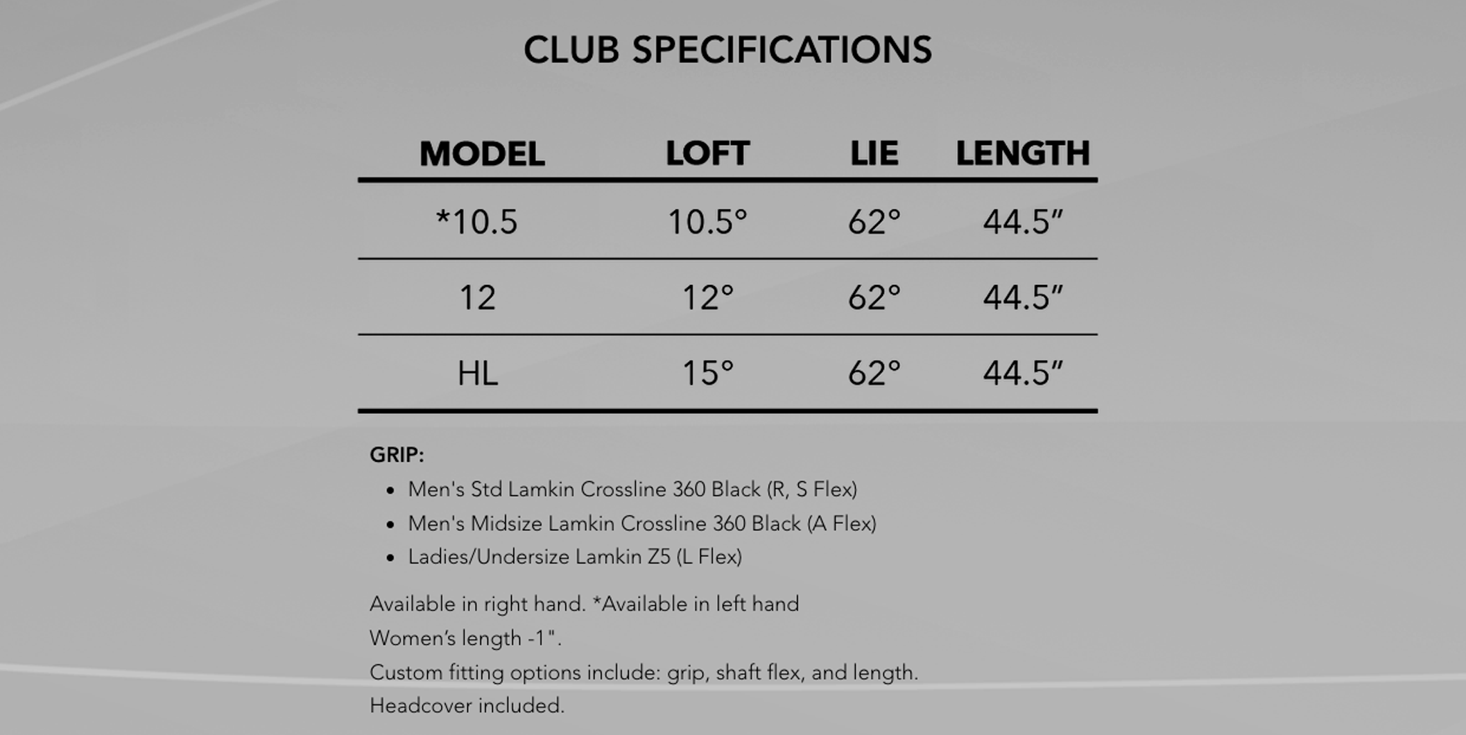 Hand/Loft: 10.5° (RH/LH) | 12° (RH) | HL 15° (RH)