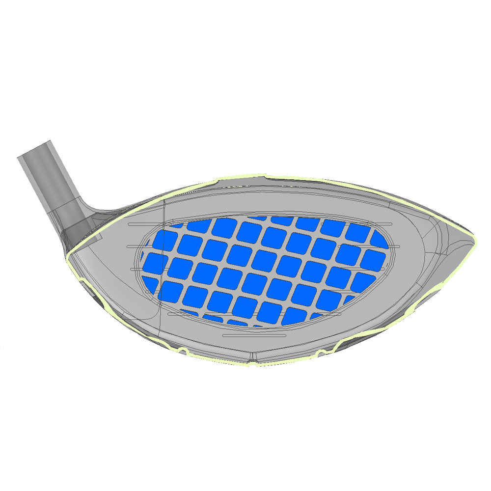 Breakthrough face technology that features 36 different thick and thin diamond shapes or “mini-trampolines” behind the face. Diamond Face VFT produces a hotter face with faster ball speeds and better performance on off-center hits, as well as reduced spin.