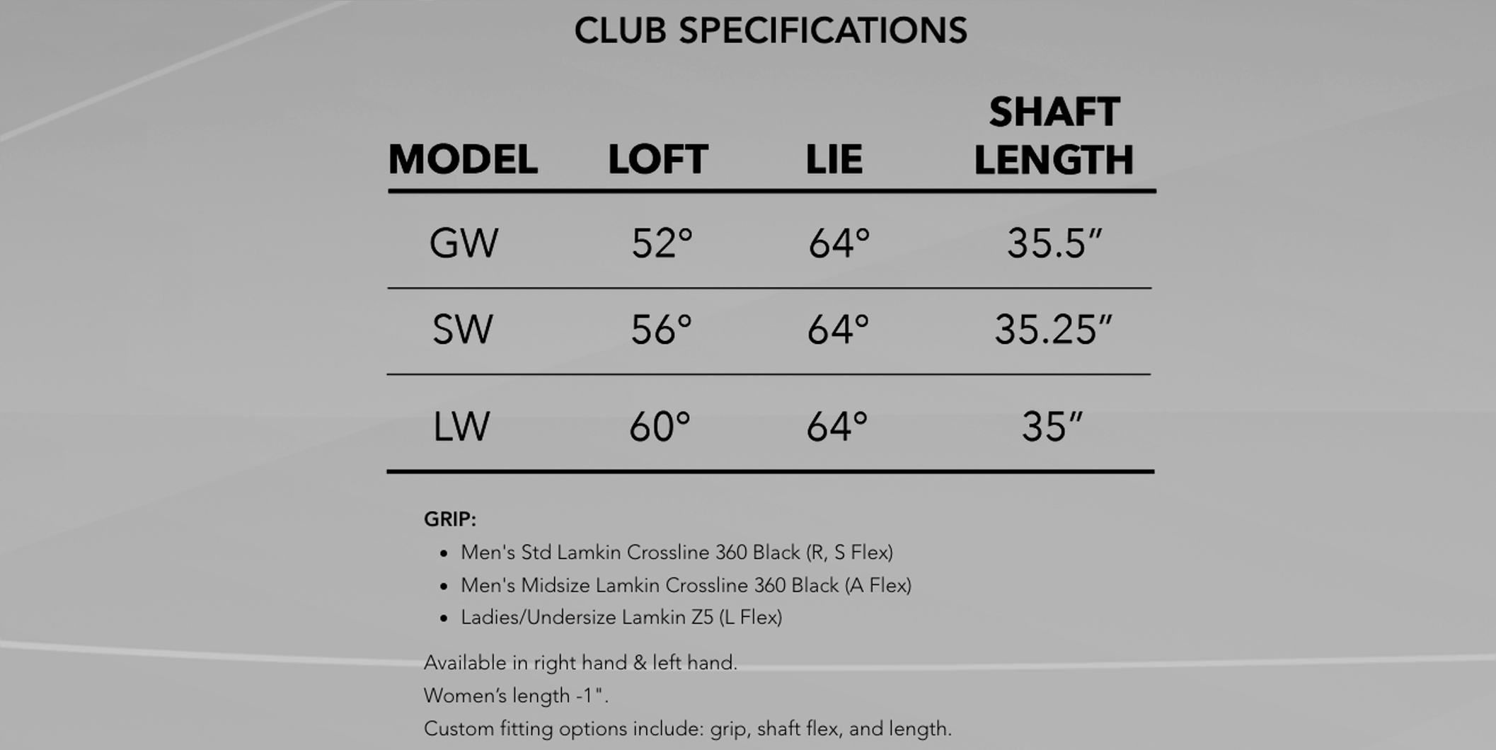 Hand/Loft: 52° (RH/LH) | 56° (RH/LH) | 60° (RH/LH)