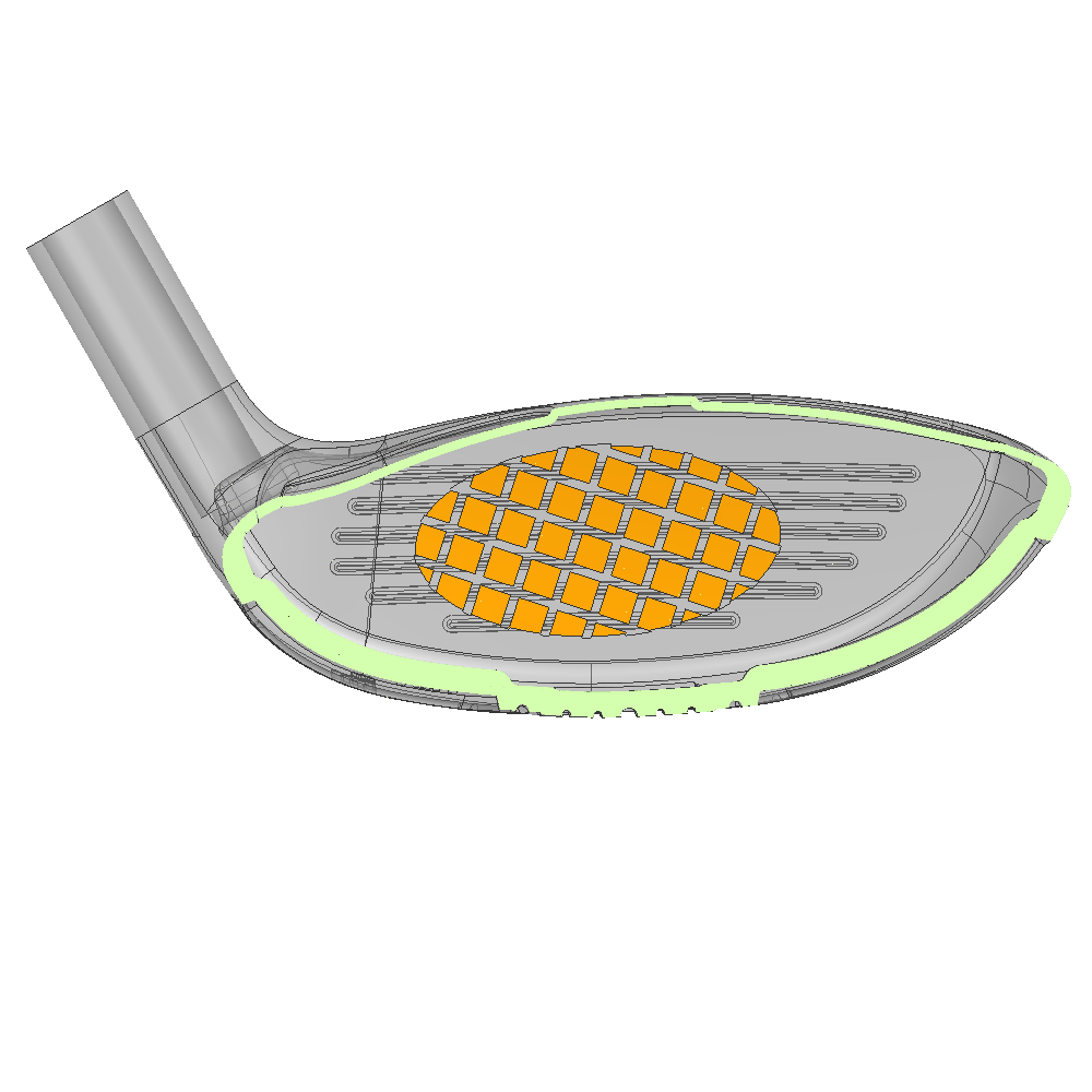 The proprietary VIBRCOR high-grade TPU is strategically placed in the deep undercut pocket to create a speed-inducing and feel-enhancing internal technology that creates a distinct feel of the clubhead and that dampens sound and shock at impact.