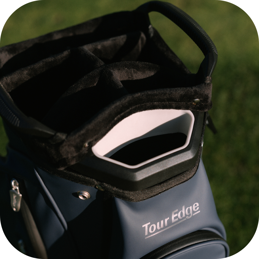 Load your bag onto the cart with confidence, knowing your essentials are protected. The strap pass-through system secures the bag to the golf cart for minimized rattle, while the 5-way top and additional external putter well to keep your sticks organized.