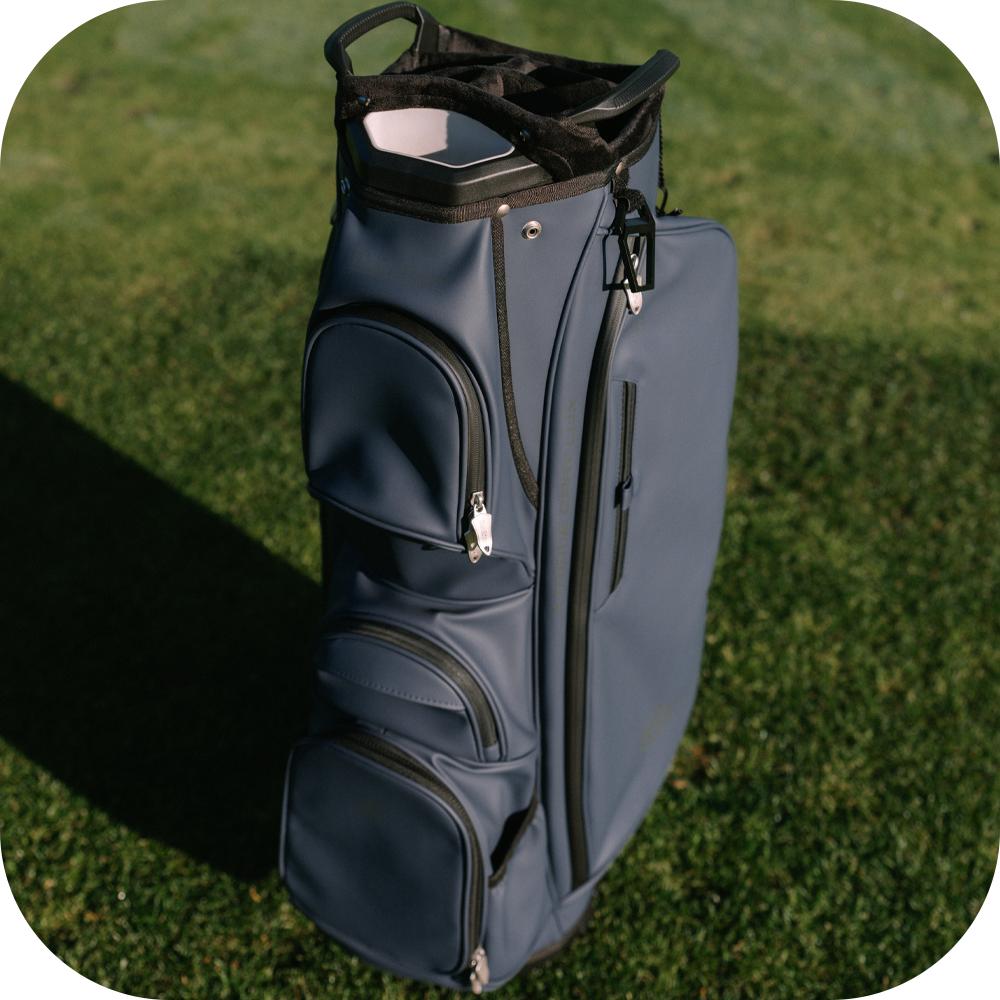 Organize your essentials across nine convenient pockets. Two quick-grab magnetic pockets are available; one designed for golf ball storage and the other for your range finder. Store your valuables safely in five available waterproof zipper pockets, and keep hydrated throughout the round with dual insulated cooler sleeves.